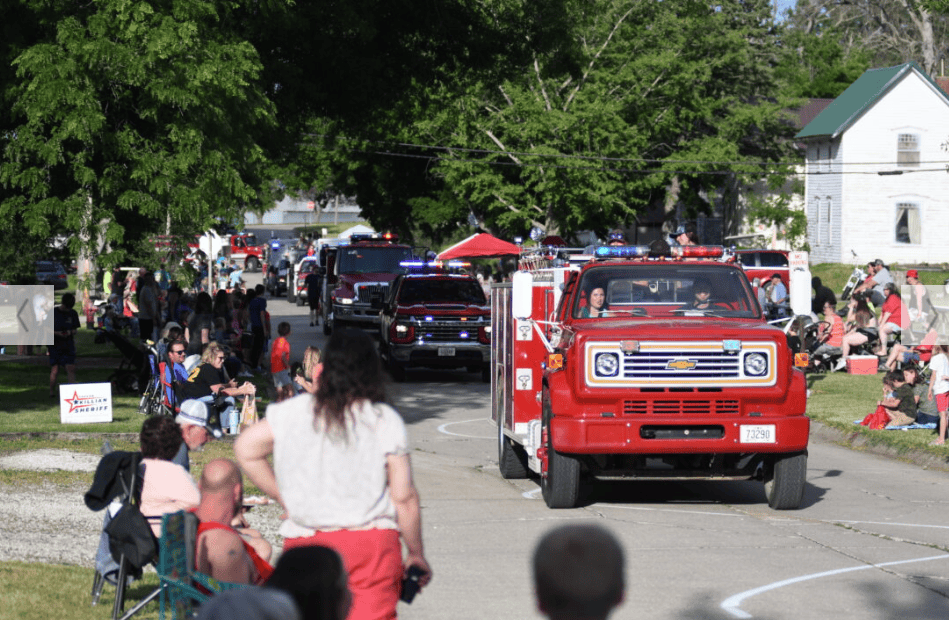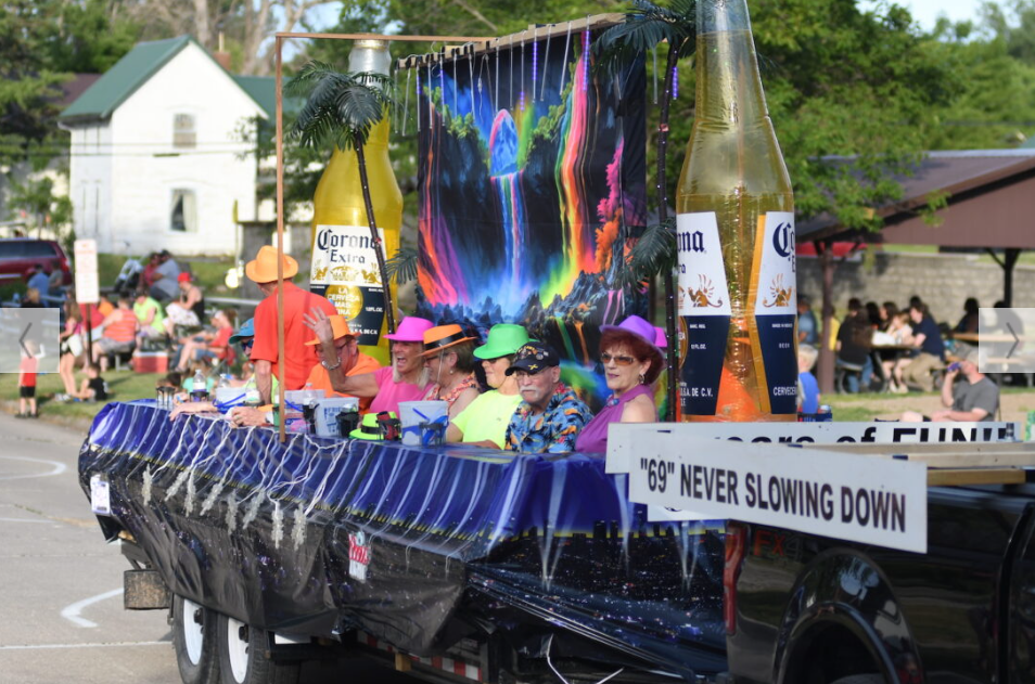 The parade starts at the corner by Peace Church heading east on Johnston St for 5 blocks, then south on King St. for 1 block, and back west on 4th St going by the City Park for 5 blocks.