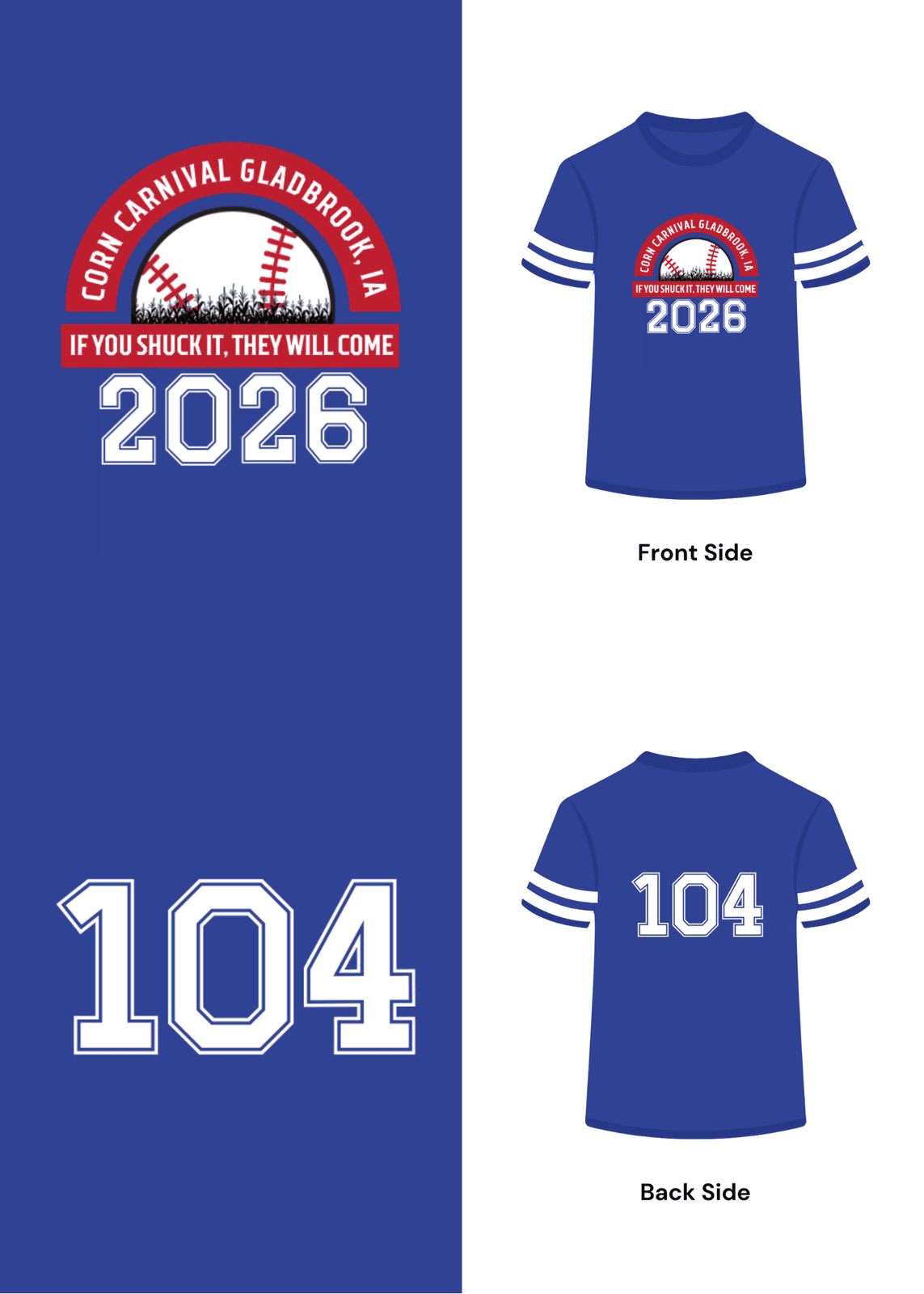 Commemorative T-shirts are sold each year featuring the Corn Carnival theme. The 103rd Corn Carnival theme in 2025 is "Corn in the USA". T-shirts will be available at Peace Church and during various community events including the April Fish Fry. During Corn Carnival, they will be available, Thursday during the collectors fair in the memorial building 10am to 6pm. They will also be available upstairs in the City Centre at the Corn Carnival Corporation booth, 3 to 10 pm Fri, and from 1 to 5pm Sat. Stop by the booth to purchase your t-shirts until they are gone.
